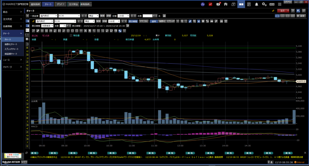昨日もサンリオだったが、日足ではあまり変化が見られず、ボラがびみょーな一日であった。ボラがびみょーな一日ほど、ゴールデンクロスが予測しやすくやりやすいのかもしれない。